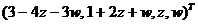 of the solution vector in terms of free variables z and w is ![]()